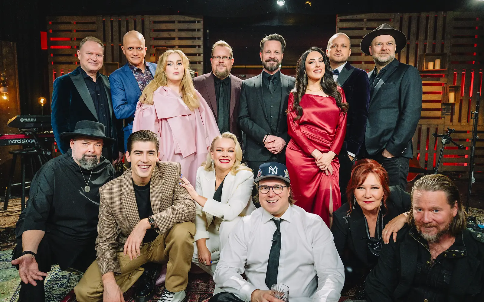 Vain elämää vm 2023 -porukka: artistit ja bändi. Kuva: Nelonen