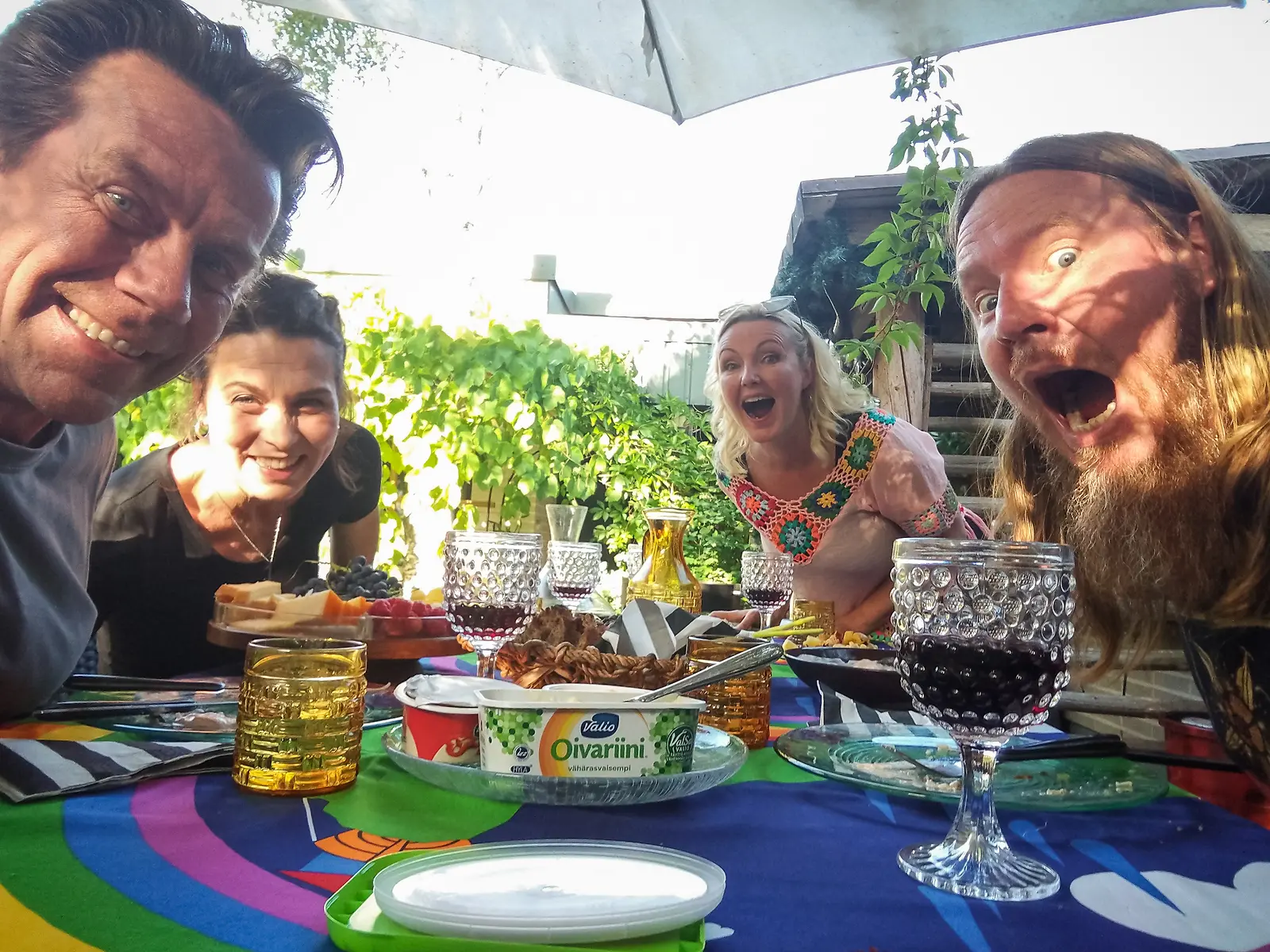 Kimpassa-ohjelmassa ollaan rennoissa tunnelmissa, kuten tässä Mari Perankoski ja Jouni Hynynen yhdessä Mikko Kuustosen ja Hanna Brotheruksen kanssa. Kuva: Nelonen