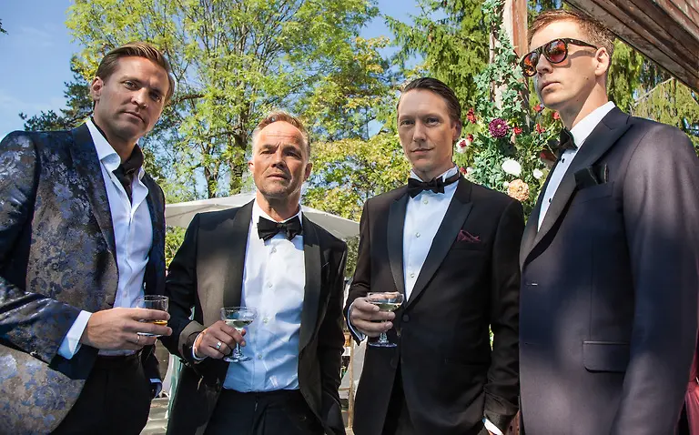 Kuvassa norjalaisen sarjan keskeiset henkilöt: Henrik (Tobias Santelmann), Jeppe (Jon Øigarden), Adam (Simon J. Berger) ja William (Pål Sverre Hagen). Yle Kuvapalvelu