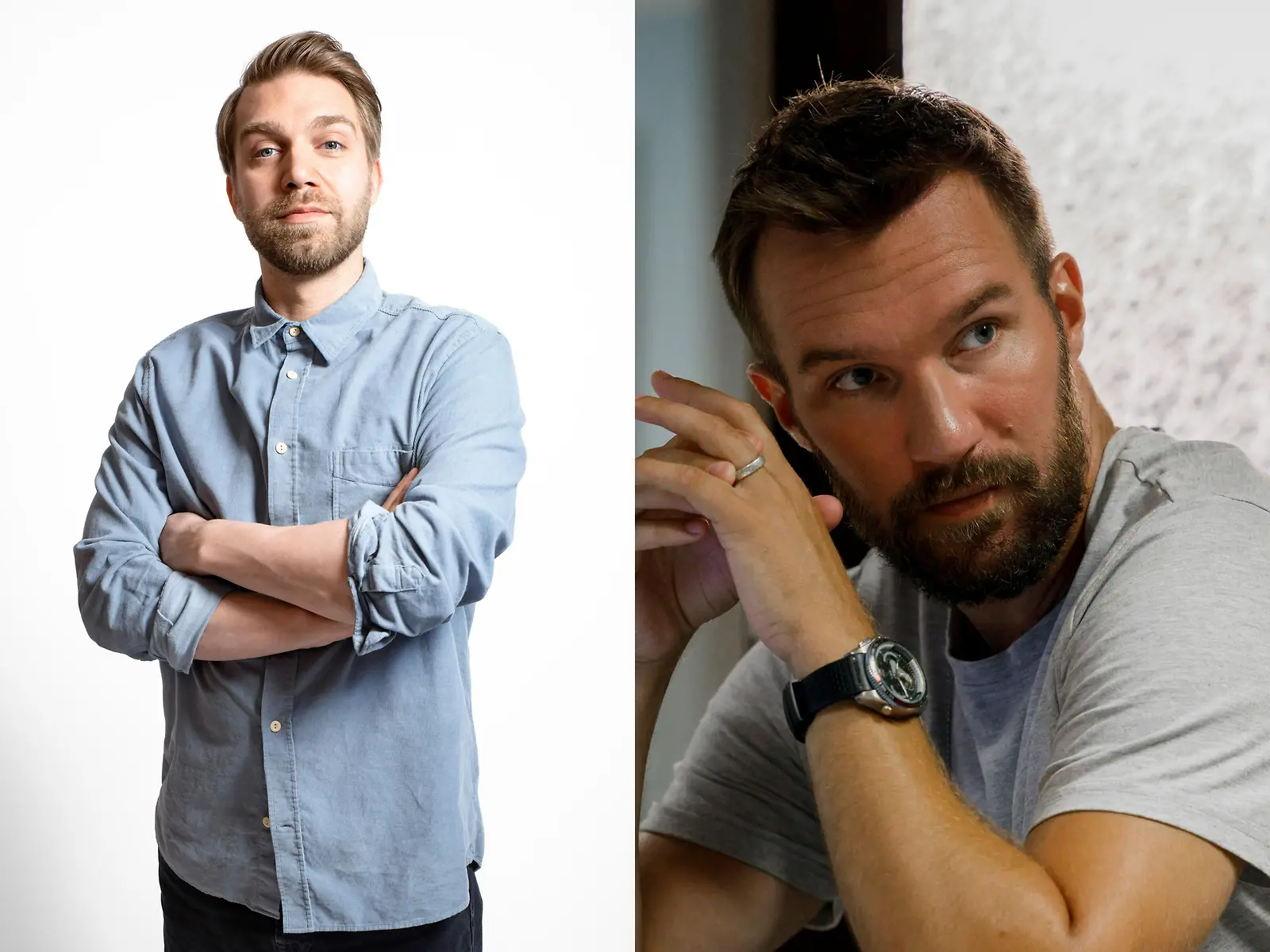 Jarkko Niemi on tuttu mm. Sunnuntailounas tv-sarjasta ja Olli Rahkonen Harjunpää tv-sarjasta. Kuvat: C More, photocollage