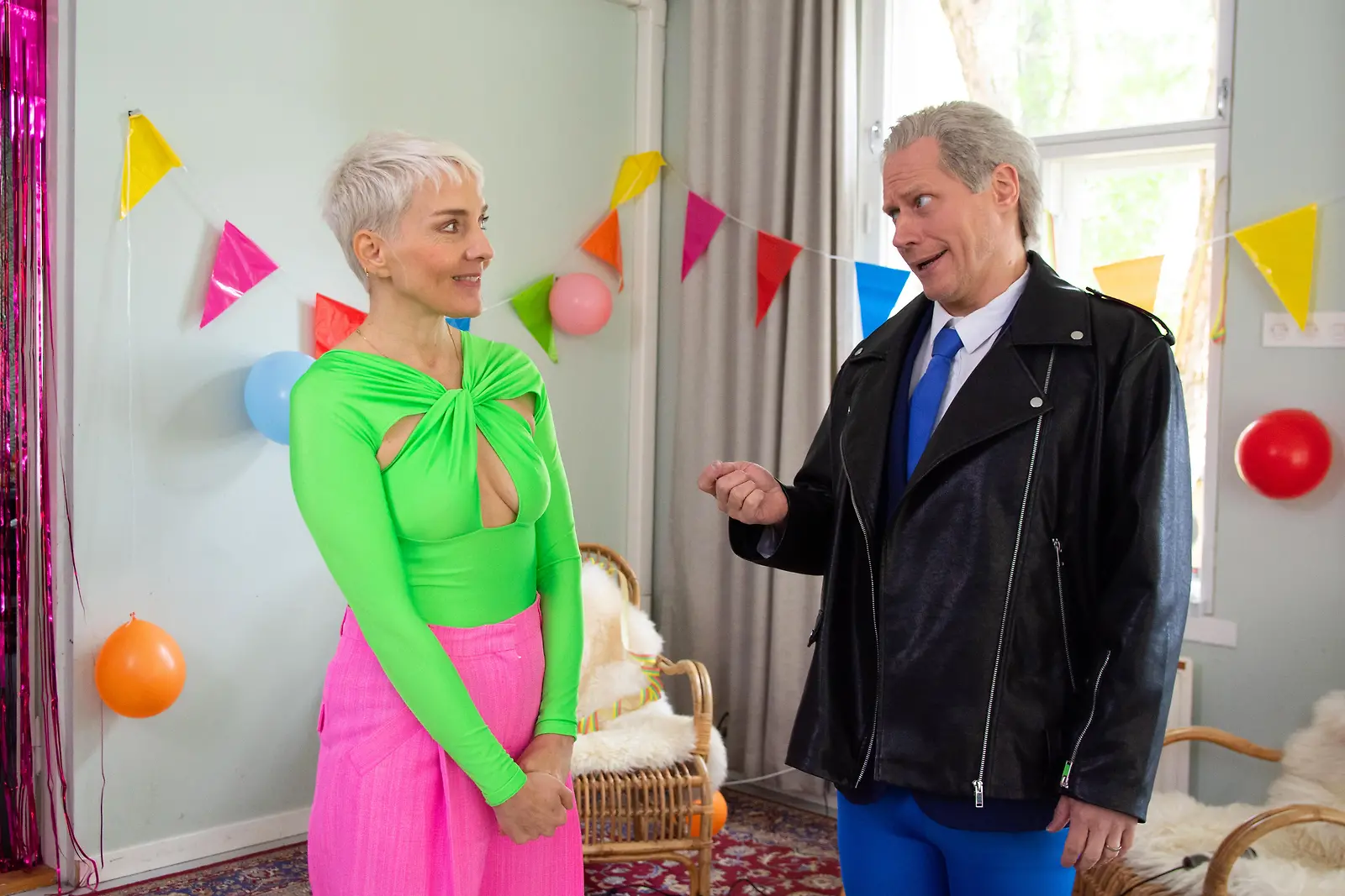 Maria Veitola ja Tammisen imitoima Sauli Niinistö yökylässä. Kuva: MTV3