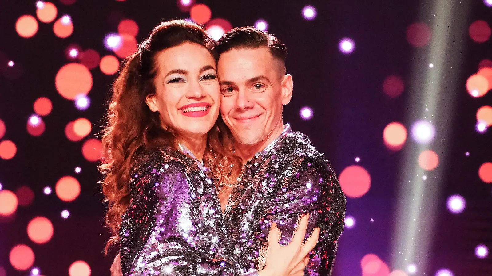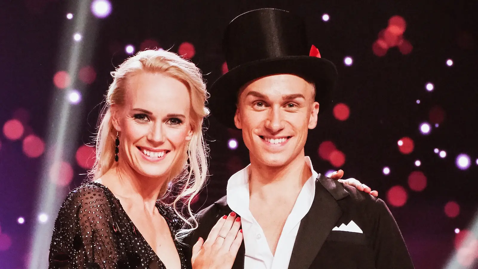Kaikki tähtiparit esittivät suorassa finaalilähetyksessä kolme tanssinumeroa. Kuvassa Christoffer ja Jutta Helena tanssi jälkeen, jonka koreografian oli tehnyt Helena Ahti-Hallberg. Kuva: MTV3
