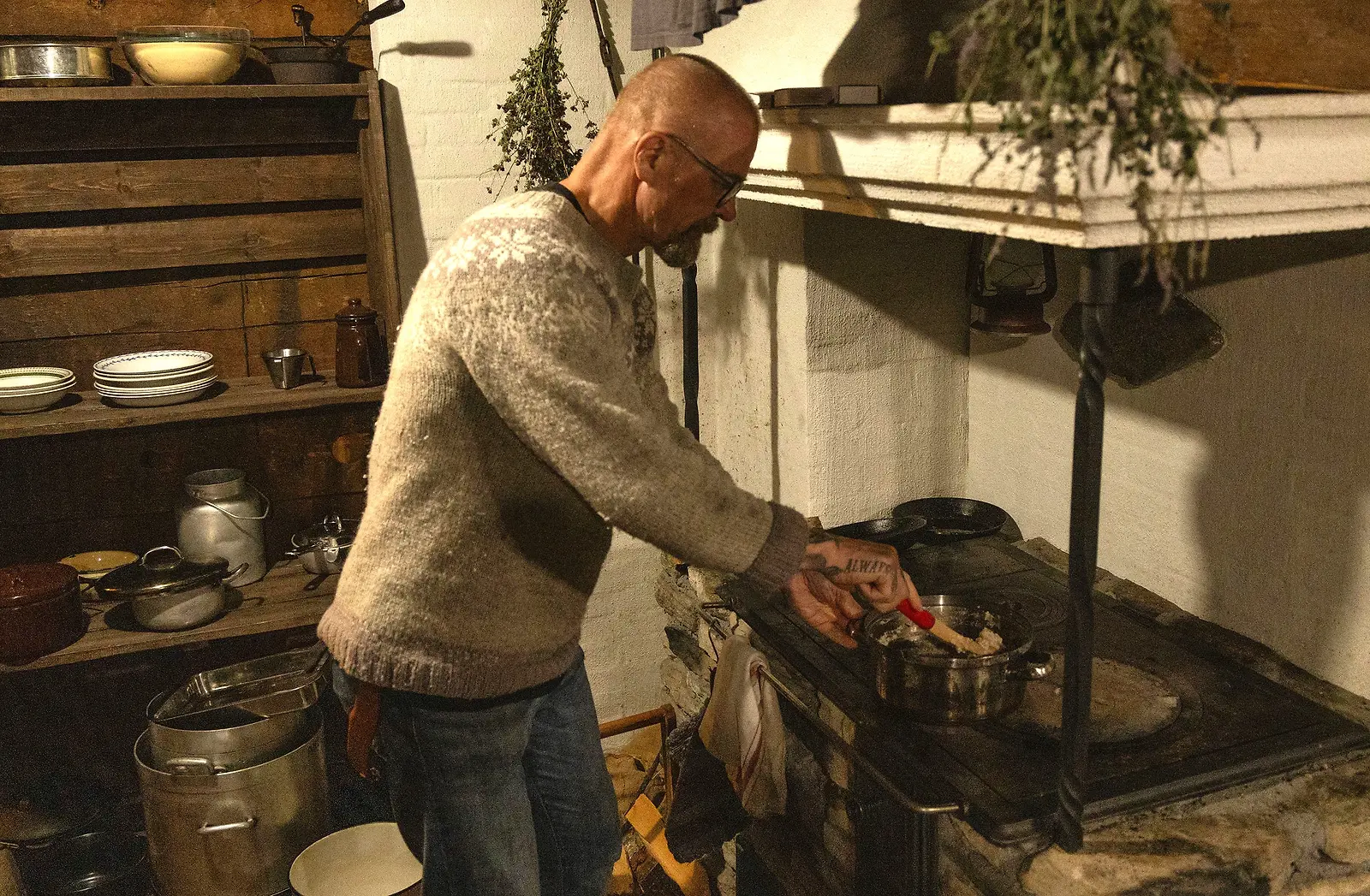Veeti Kallio hellalla kokkauspuuhissa Farmi Suomi -ohjelmassa. Kuva: Alpertti Rieskjärvi, Nelonen