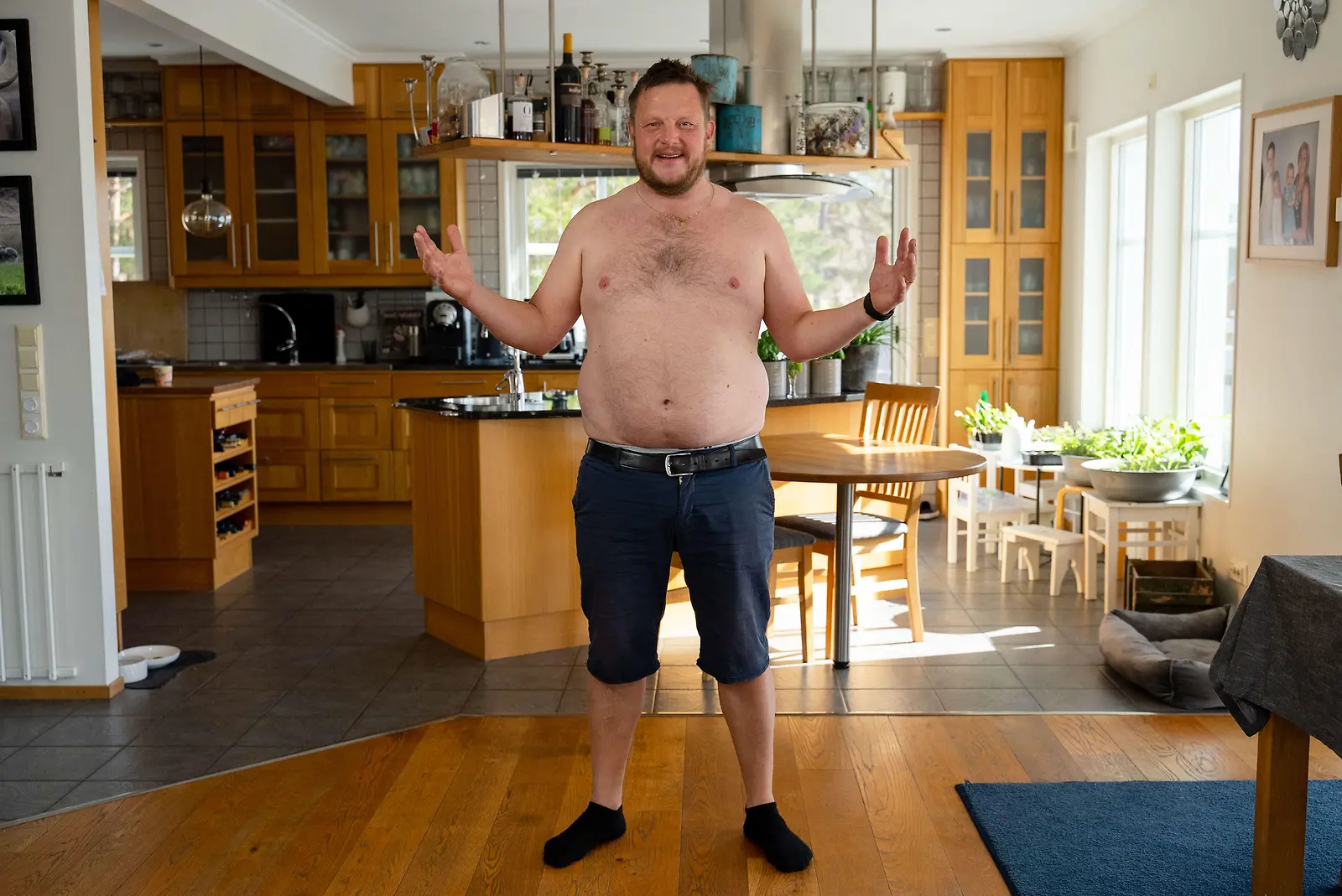 Michael "Micke" Björklund ei epäröi ottaa paitaa pois päältä Olet mitä syöt -ohjelman kuvauksissa. Kuva: MTV3