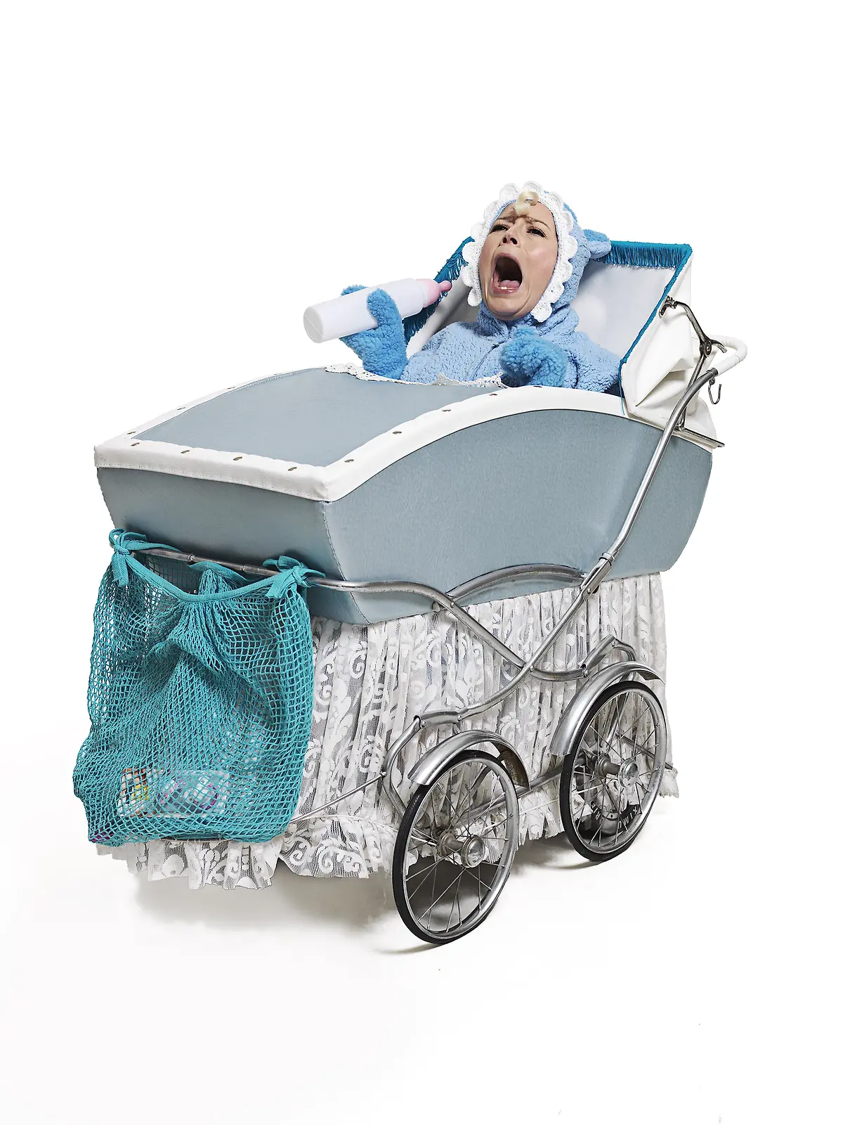 Pilvi Hämäläisen esittämä Make-vauva on mukana Putous-finaalin sketsihahmokisassa Taika-Pasin ja Barbi de Voron kanssa. Kuva: MTV3