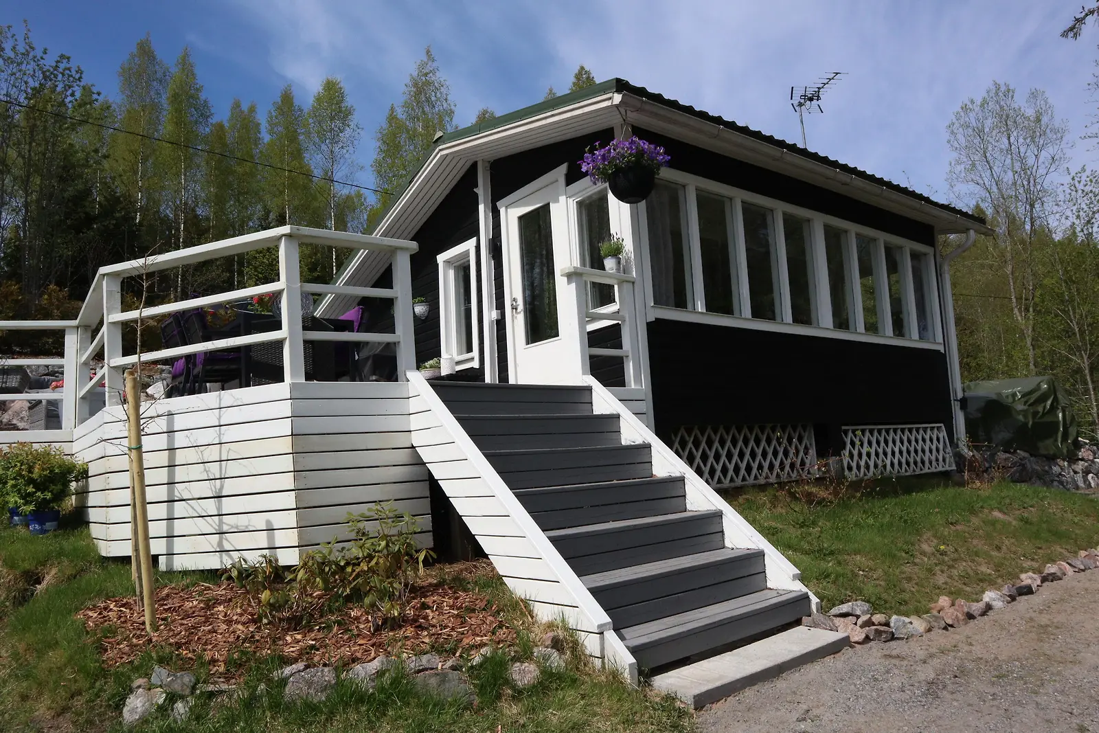 Mökillä on iso terassi, jossa voi istua ruokailemassa tai istua iltaa. Kuva: MTV3