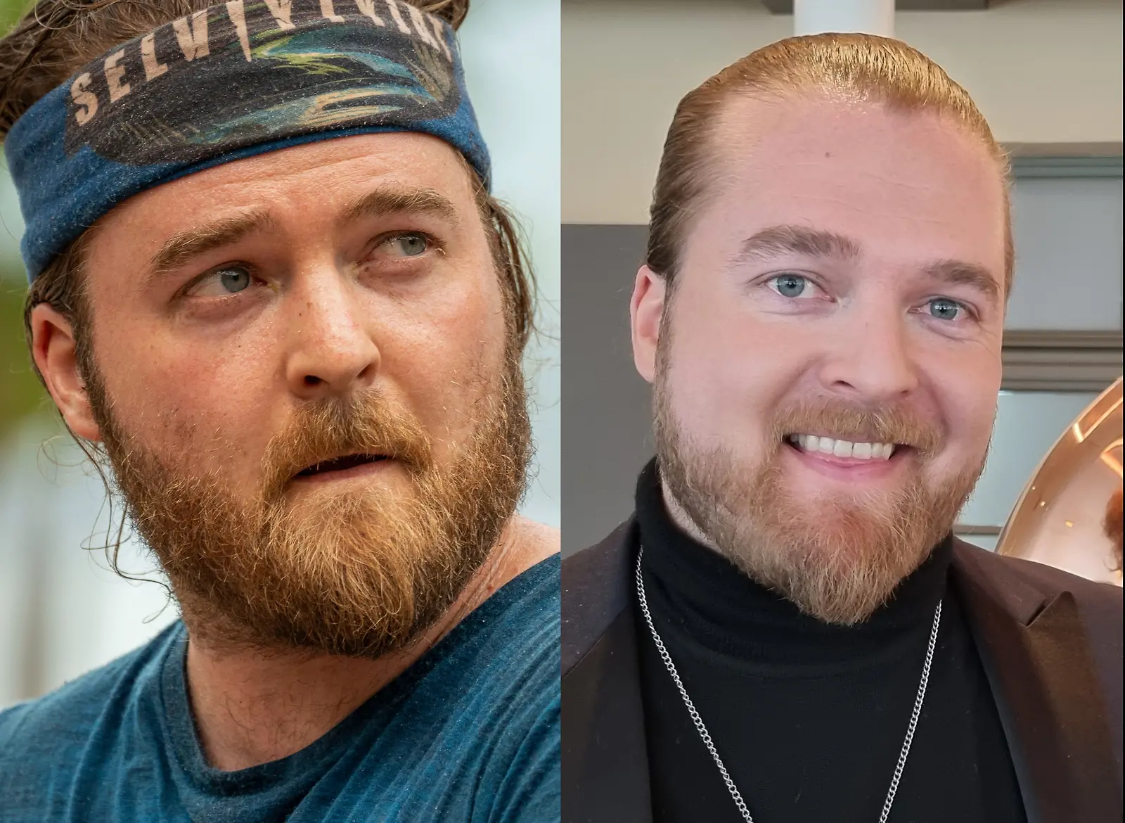 Teemu Roivainen kahdessa eri lookissa: vasemmalla kuva Selviytyjät Suomi -realitystä (kuva Nelonen) ja oikealla kuva Tähdet, tähdet -lehdistötilaisuudesta (kuva Suomi24 Viihde), kollaasi photocollage