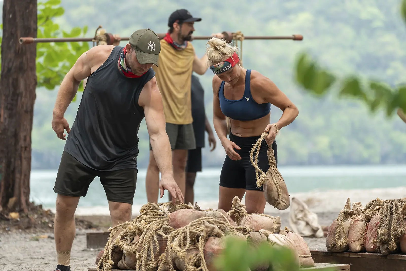 Selviytyjissä siirryttiin yksilökisaan. Rami ja Kipa saivat ääniä heimoneuvostossa, kun vahvat kisaajat haluttiin ulos. Kipa tippui täpärästi, kuvassa takana jo aiemmin kisasta pudotettu Gogi. Kuva: Nelonen