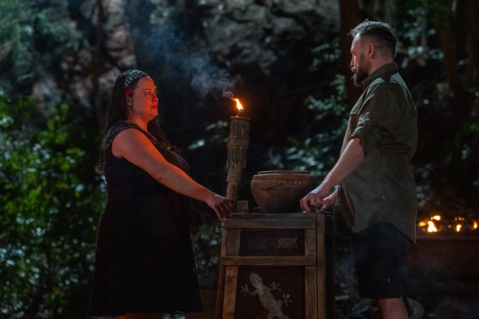 Niina Kuhta jätti soihtunsa Riku Rantalalle ja jätti hyvästit askeettiselle viidakkoelämälle. Kuva: Nelonen