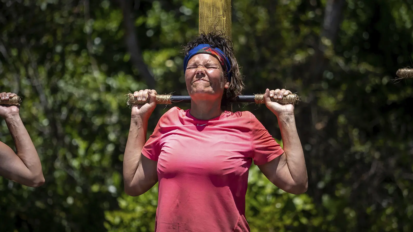 Kantola otti kisat tosissaan. Tässä taidonnäyte raskaasta koskemattomuuskilpailusta. Kuva: Nelonen/Lars Johnson