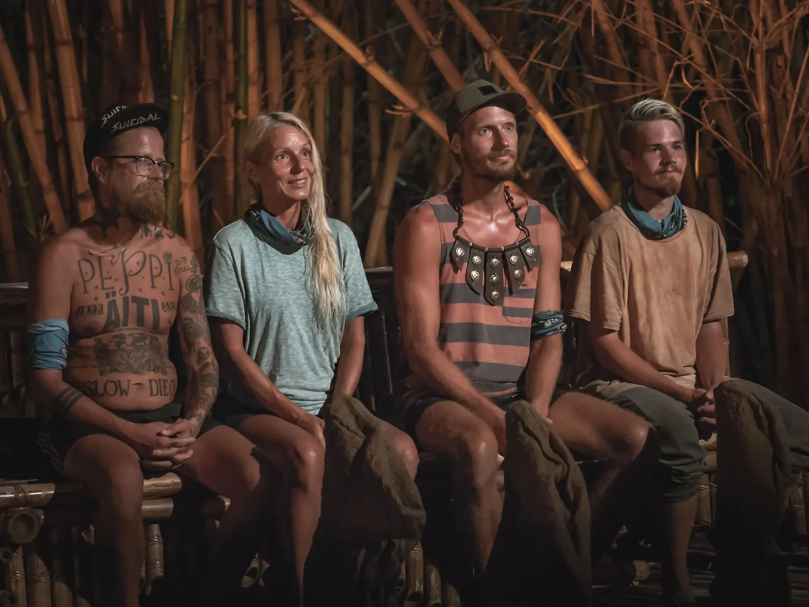 Kim Herold nappasi koskemattomuusamuletin ja Virpi Kätkä sai lähteä, kuvassa vasemmalla Wallu Valpio ja oikealla Miska Haakana. Kuva: Nelonen Media / Lars Johnson.