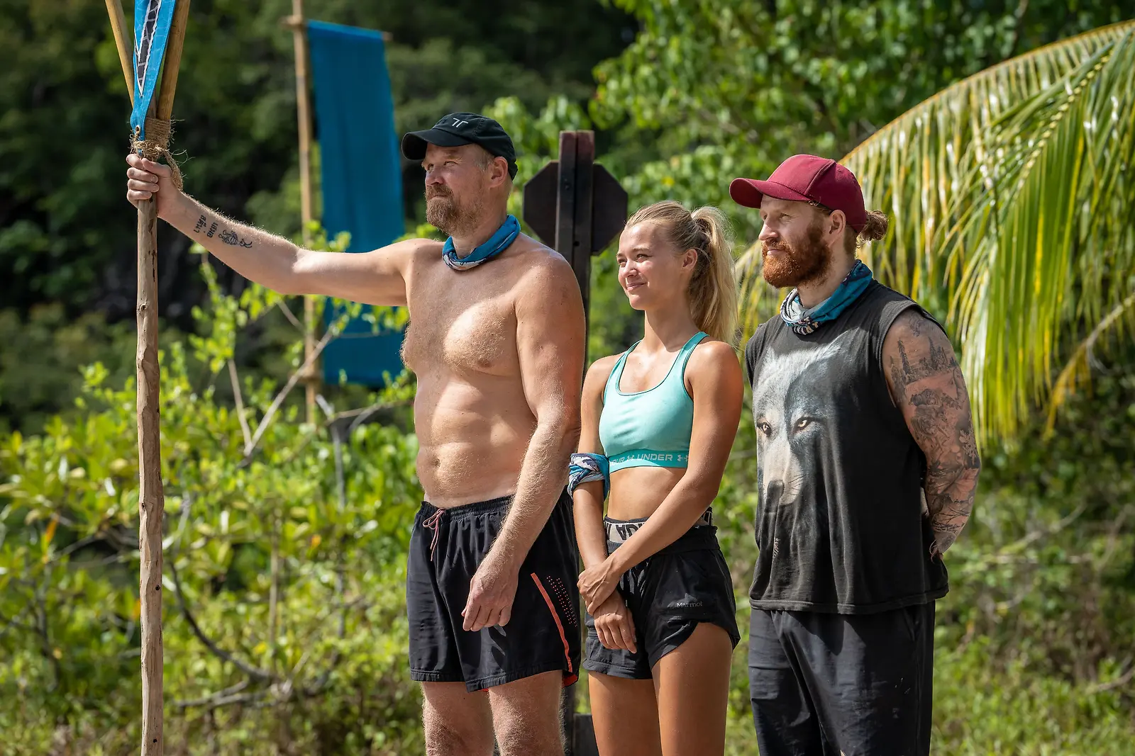 Selviytyjät-finalistit Sami Helenius, Julia Korpinen ja Tommi Manninen. Kuva: Nelonen