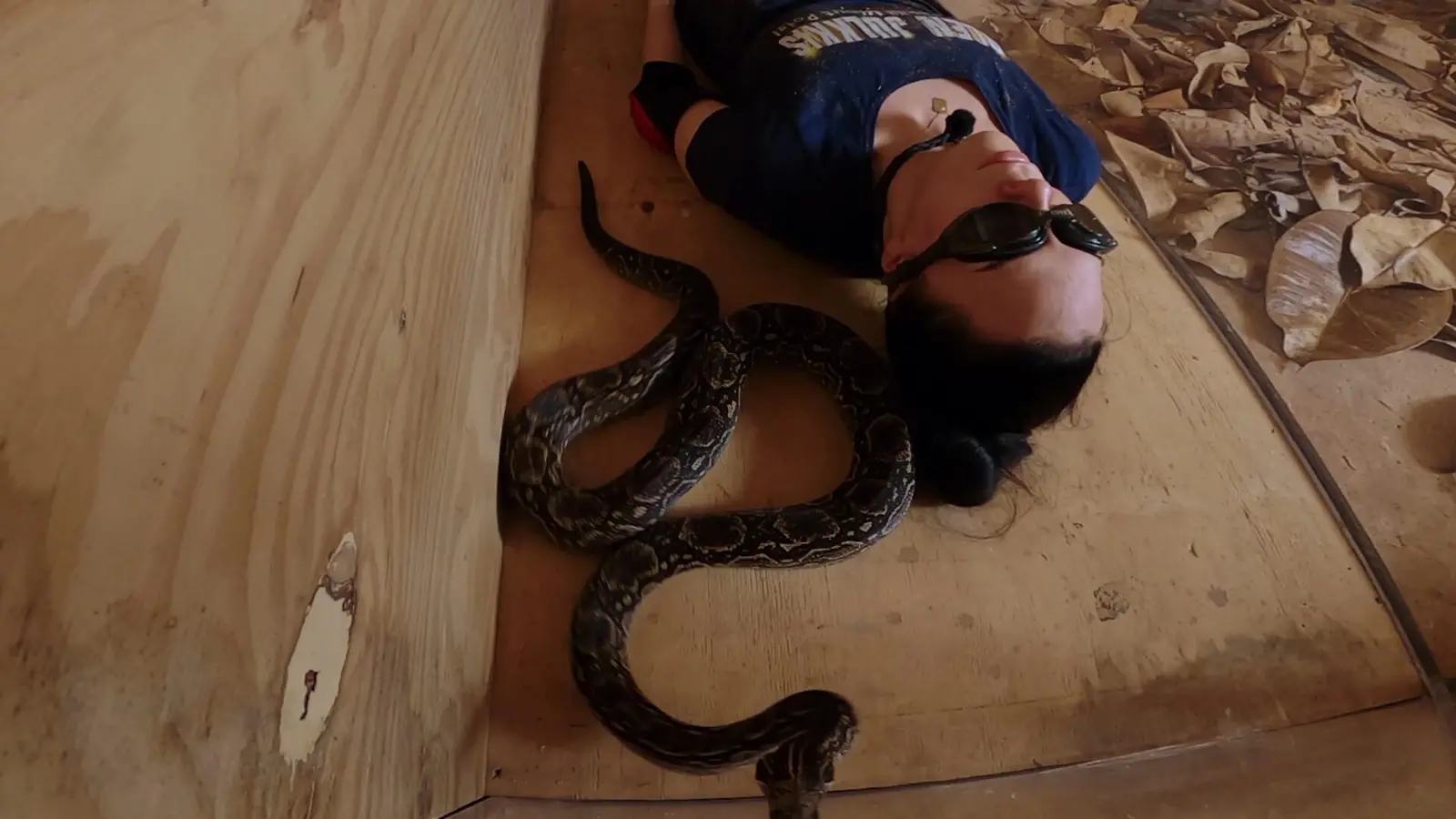 Sini Sabotage ja käärmeet Olen Julkkis... Päästäkää Minut Pois! -seikkailuohjelmassa. Kuva: MTV3