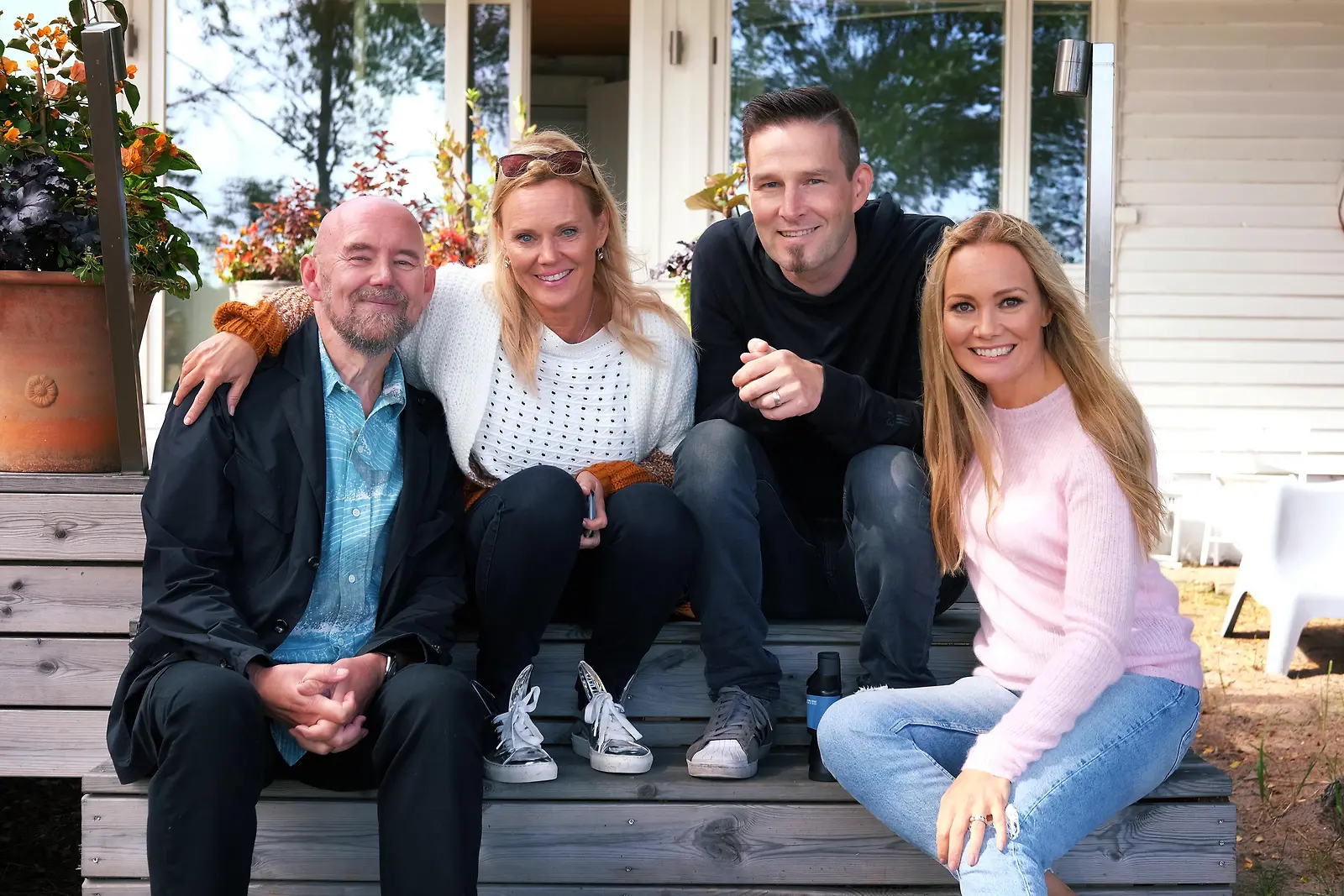 Villa Hintikassa vietetään kesäpäivää ravintoloitsija ja juontaja Sirpa Selänteen, avaruustähtitieteen professori Esko Valtaojan ja DJ- säveltäjä Daruden kanssa. Kuva: MTV3