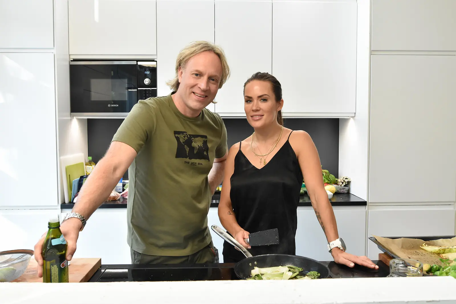 Martina Aitolehti ja Kape Aihinen laittavat yhdessä ruokaa MTV:n Illallinen äidille -ohjelmassa.
