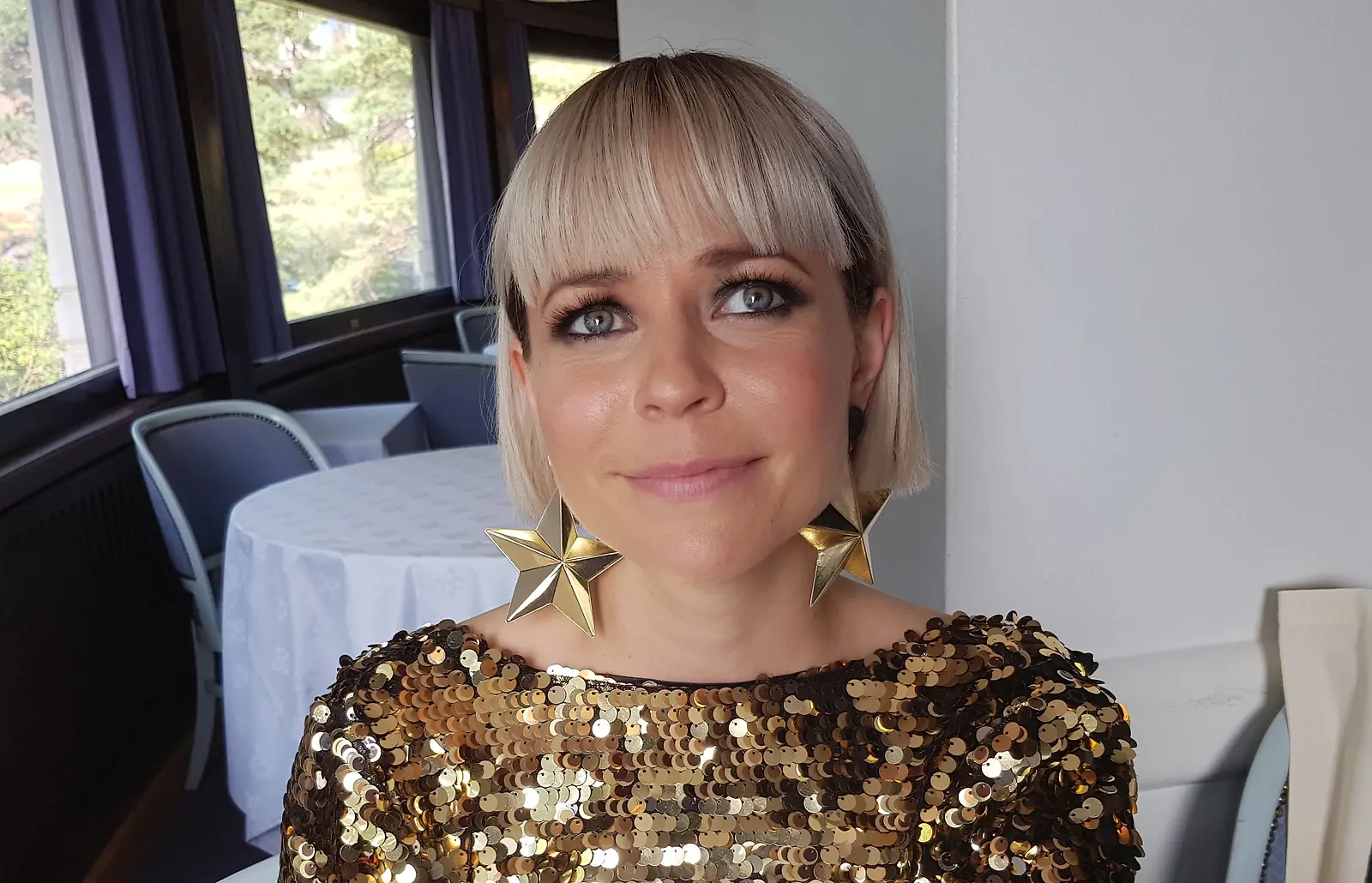 Paula Vesala juonsi UMK-finaalin Mmiisas kanssa v. 2022. Kuva: Yle/Nelli Kenttä
