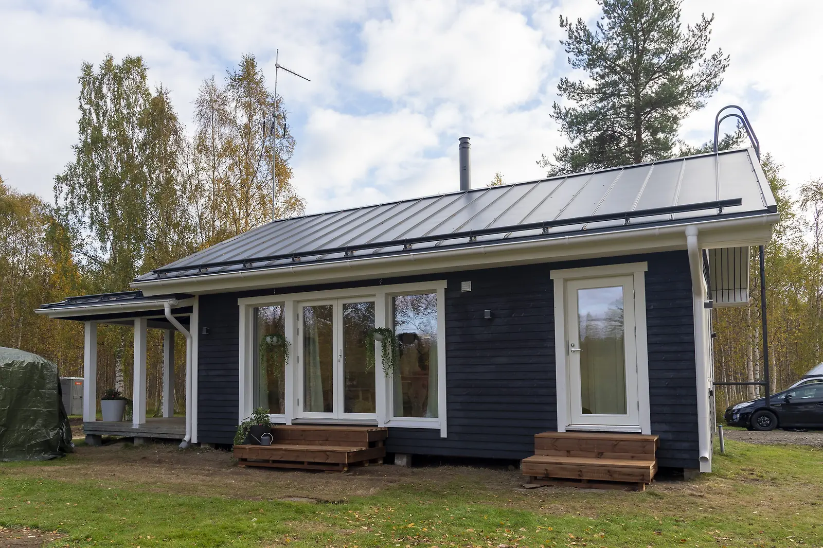 Mökki modernisoitui, kun se sai tummaa väriä pintaansa ja ikkunakehykset saivat vaalean sävyn. Kuva: Manne Koponen/Nelonen
