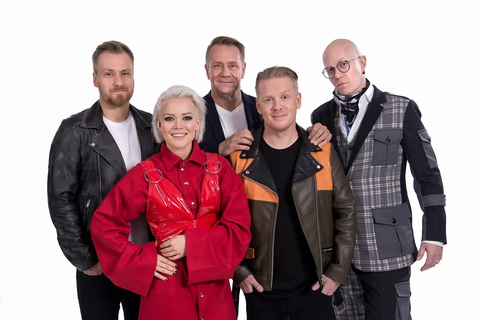 Heikki Paasonen, Anna Puu, Olli Lindholm, Redrama ja Toni Wirtanen. Kuva: MTV3.