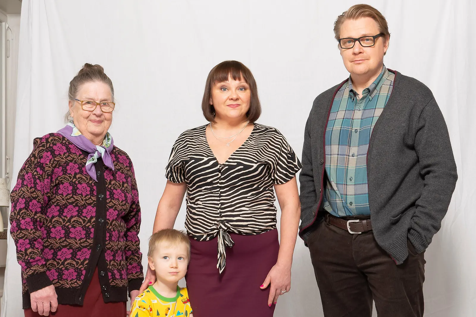 Perheet laajentuvat myös edeltävien sukupolvien suuntaan, kun Antti (Jarkko Pajunen) ja Reija (Anna-Leena Sipilä) ottavat Antin dementoituneen äidin kattonsa alle.