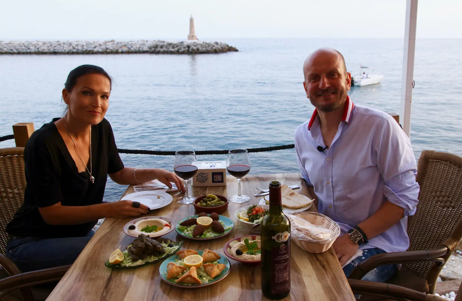 Tarja Turunen ja Hans Välimäki Välimeren rannalla. Kuva: Nelonen