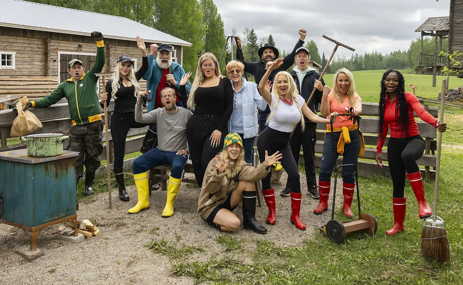 Farmi Suomi: Revanssi -porukkaa. Ekassa jaksossa tippui Seksikäs Suklaa (Viki Konssi), joka ei ole kuvassa. Kuva Alpertti Rieskjärvi, Nelonen