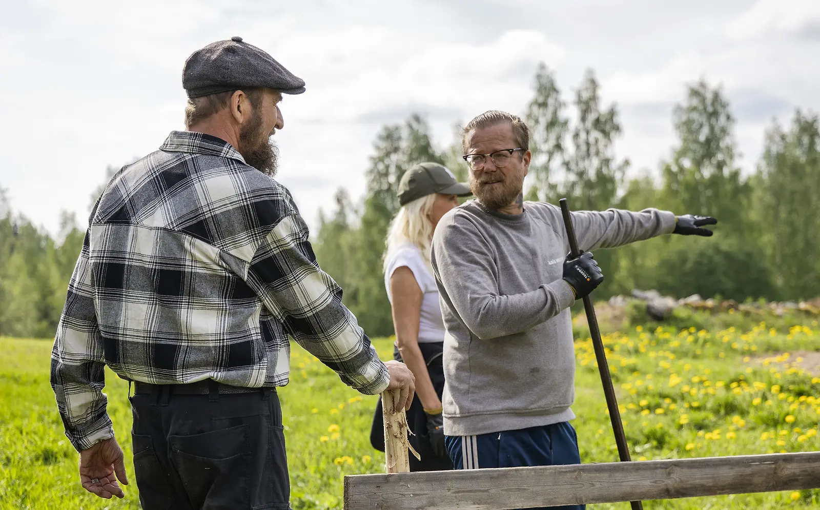 Pehtoori antaa Farmilla työtehtävät. Tässä neuvonpitoa Walpion kanssa, Susanna Penttilä taustalla. Kuva Alpertti Rieskjärvi, Nelonen