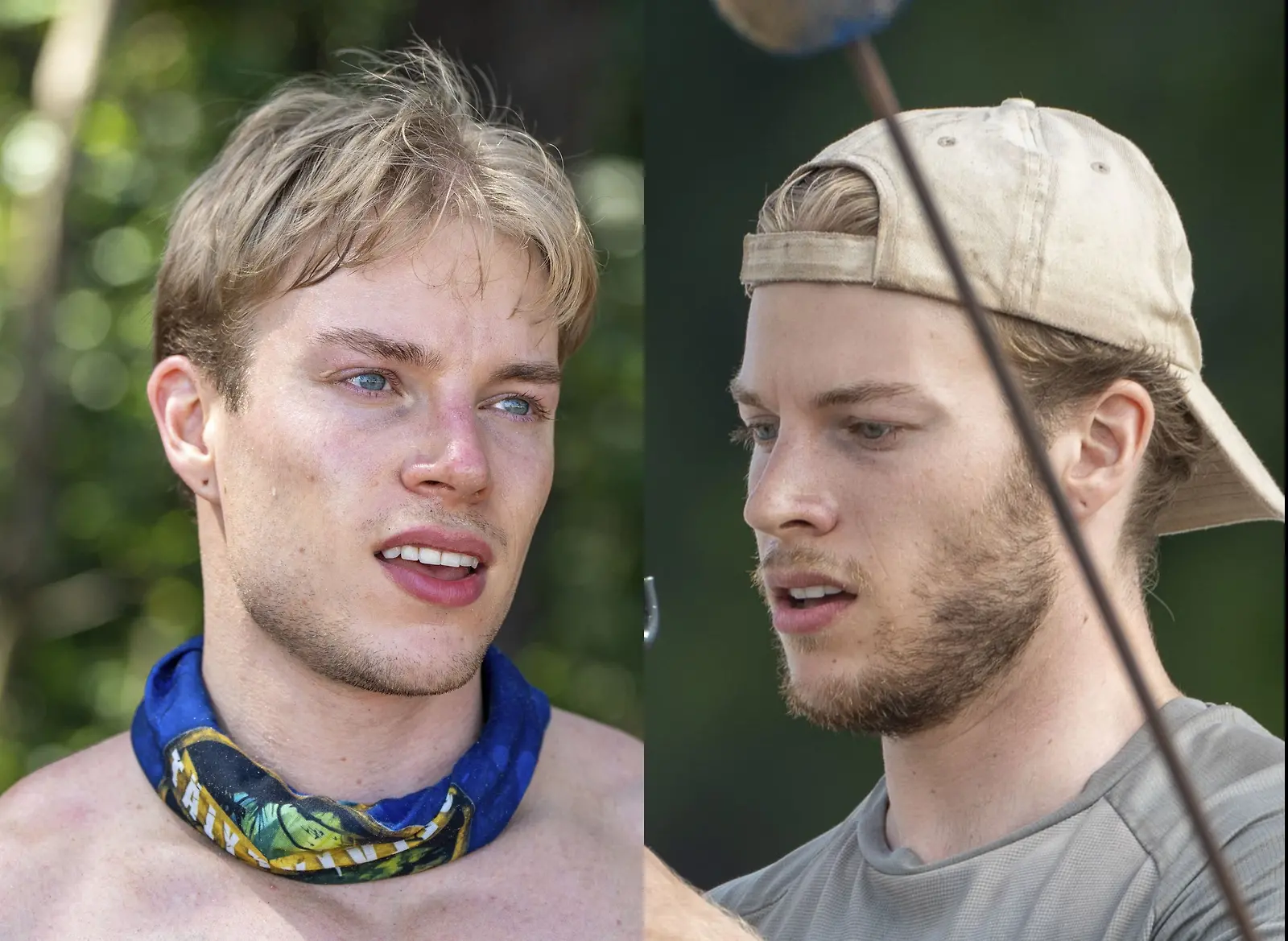 Vasemman puoleisessa kuvassa Mikael Renwall Selviytyjät-seikkailun alkupäivinä, oikean puoleisessa kuvassa viidakossa elämisen loppupäivinä, Kuvat: Nelonen, kollaasi photocollage