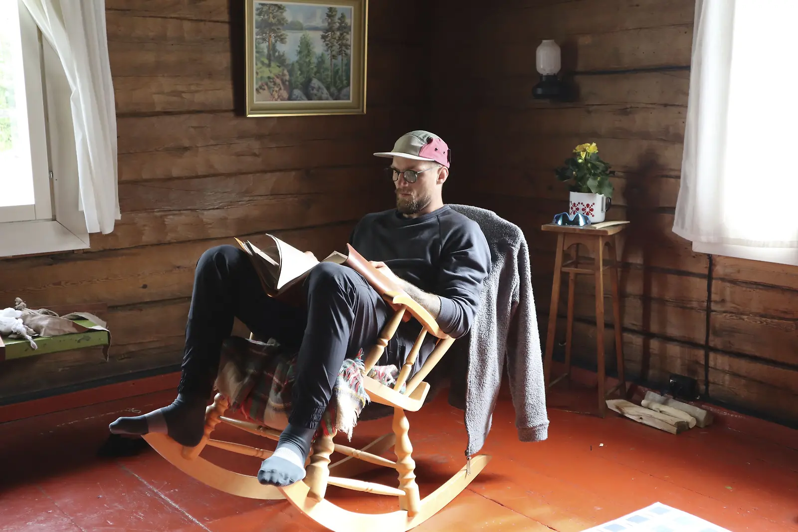 Teemu Packalén Farmi-keittiössä kiikkutuolissa. Kuva Alpertti Rieskjärvi, Nelonen