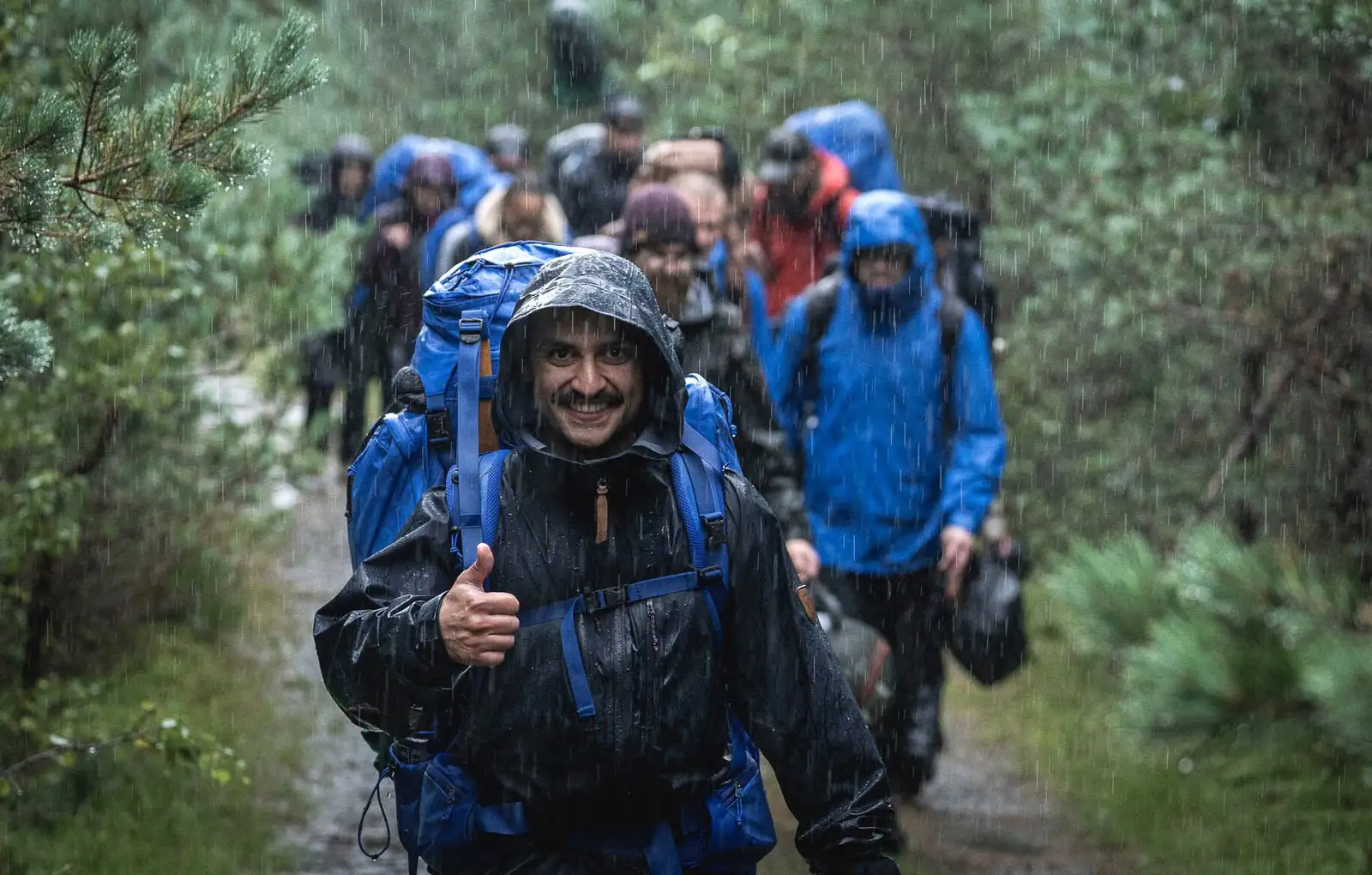 Jacky etunenässä hyväntuulisena retkikunnan etujoukoissa. Kuva: MTV3