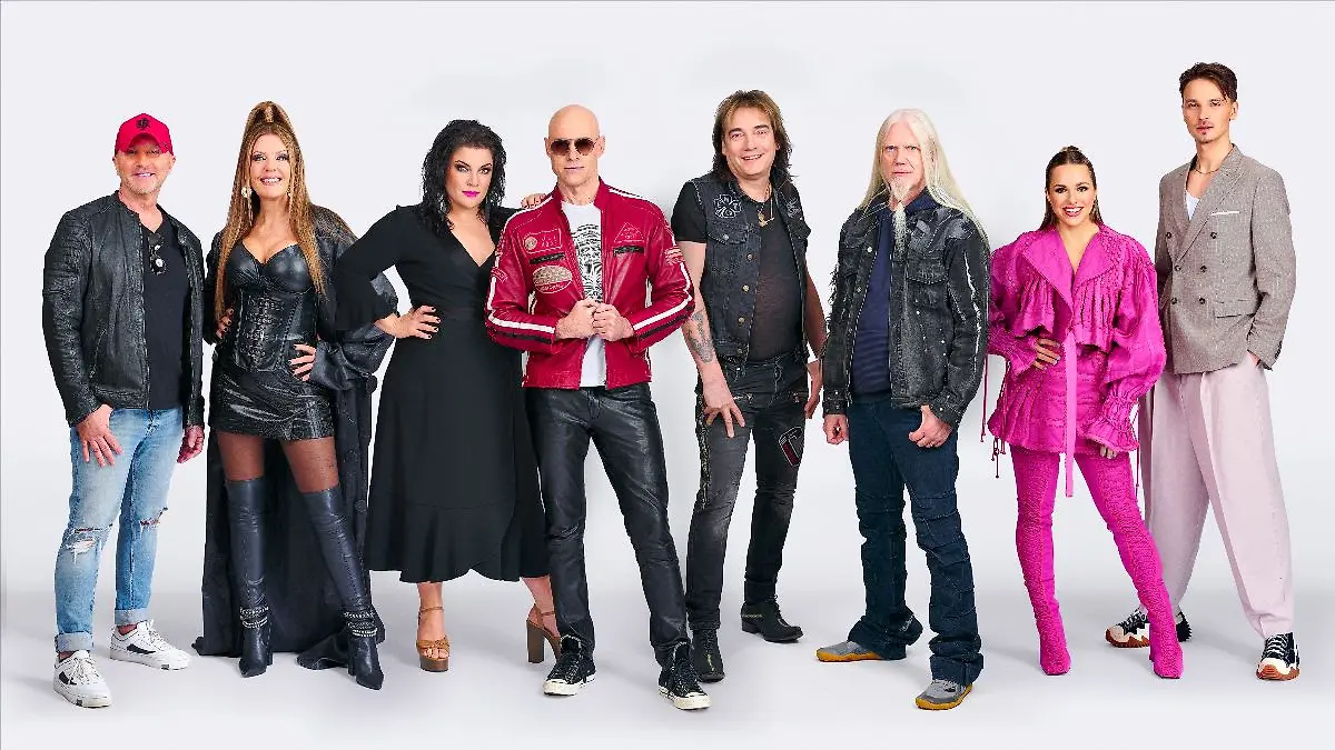 Vain elämää 2024 artistit: Waldo, Eini, Hanna Pakarinen, Jussi Rainio, Costello Hautamäki, Marko Hietala, Ilta ja Roope Salminen. Kuva: Nelonen