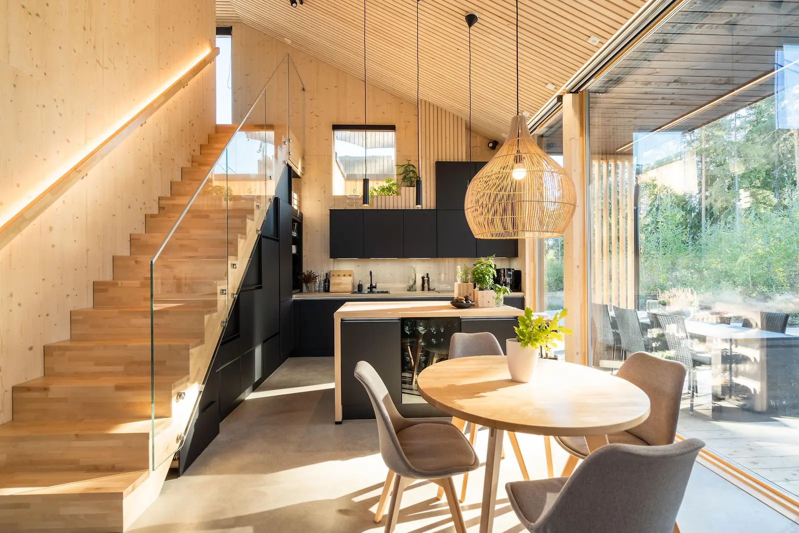 Sisustusmateriaalina on käytetty luonnonläheistä puuta. Kuva: MTV3
