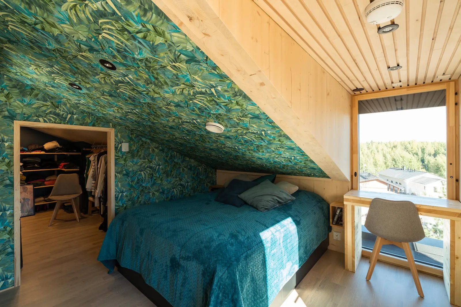 Tuleva talo on tilankäytön ihme - ja Tiina on puolestaan intohimoinen taloprojektin suhteen. Hän opiskeli puusepäksi ja valmisti itse osan huonekaluista saadakseen haluamansa materiaalit, muodot ja toiminnallisuuden.