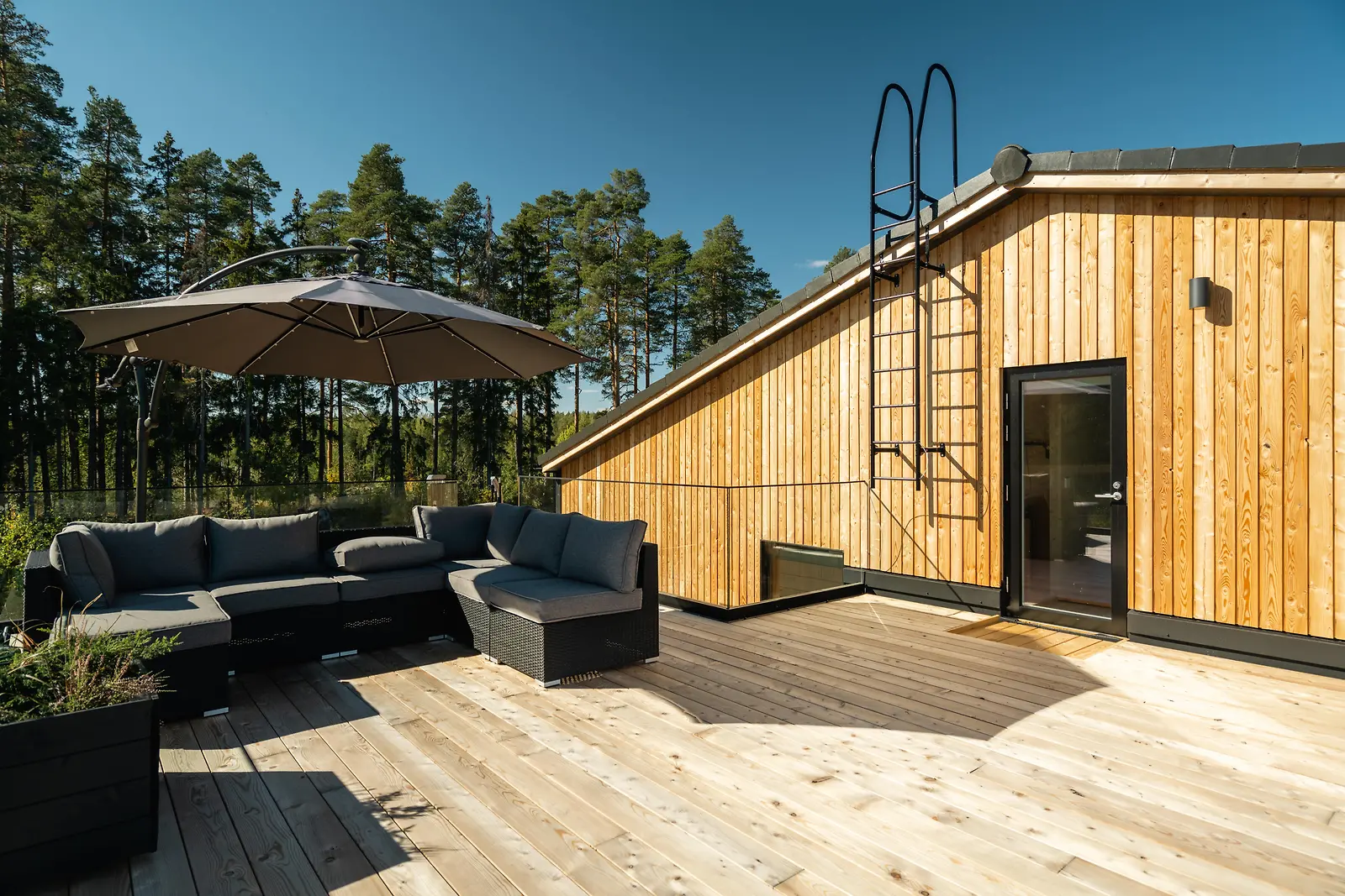 Talon pihalla on iso terassi, joka tuo lisätilaa kesäisin. Kuva: MTV3