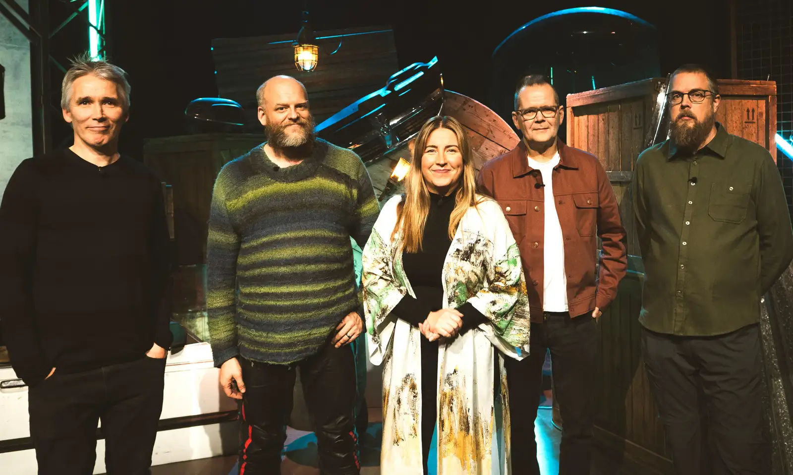 Jenni Pääskysaari vetää paneelia, Miika Nousiainen, Kari Hotakainen ja ja Tuomas Kyrö käyvät humoristisesti läpi kansalaisten huolenaiheista. Pääskysaaren vasemmalla puolella ohjelman vieras: kieltentutkija Janne Saarikivi. Kuva: MTV3