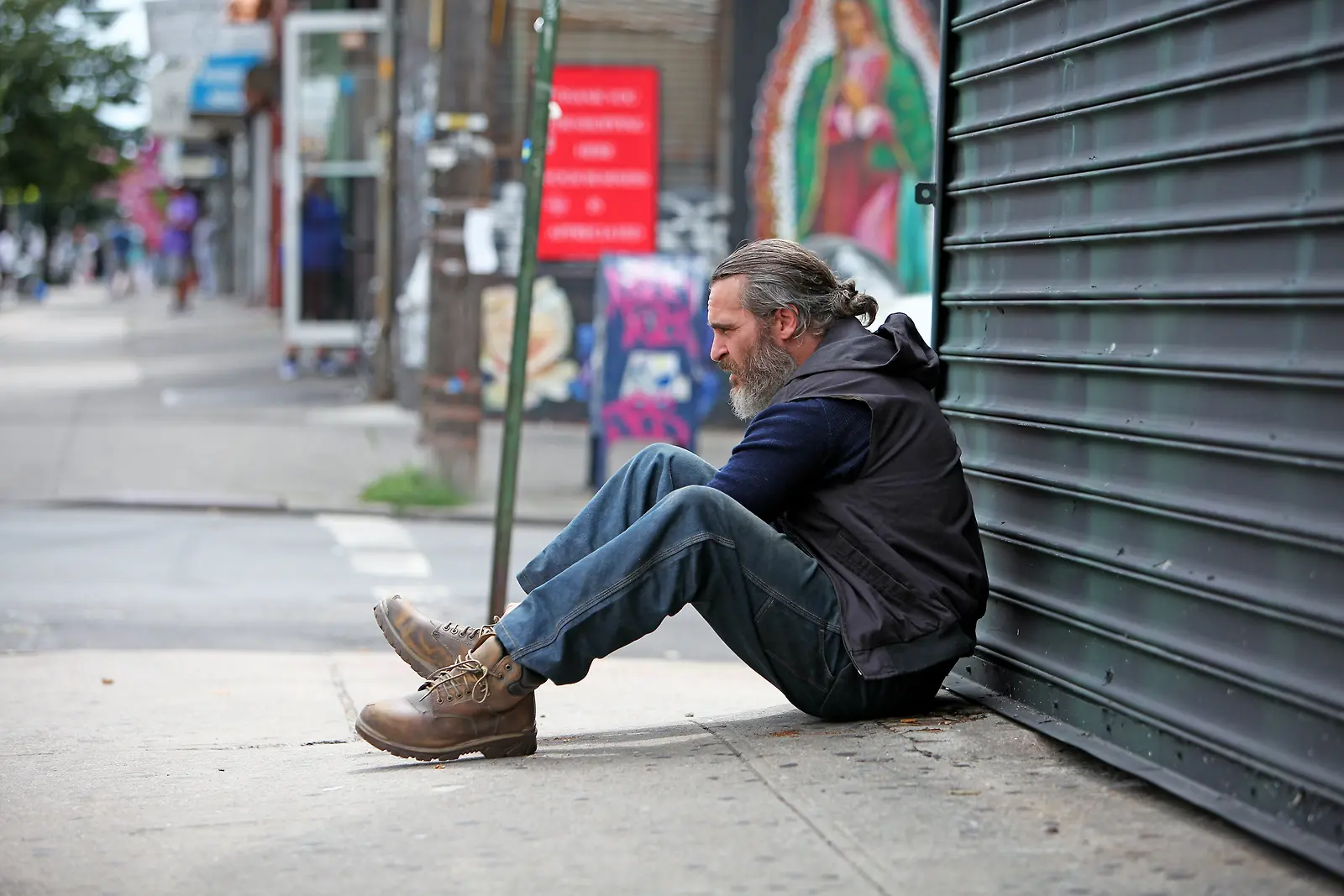 Joaquin Phoenix tekee vähäeleisen vaikuttavan roolin traumatisoituna Joena. Kuva: Alison Cohen Rosa / Yle Kuvapalvelu