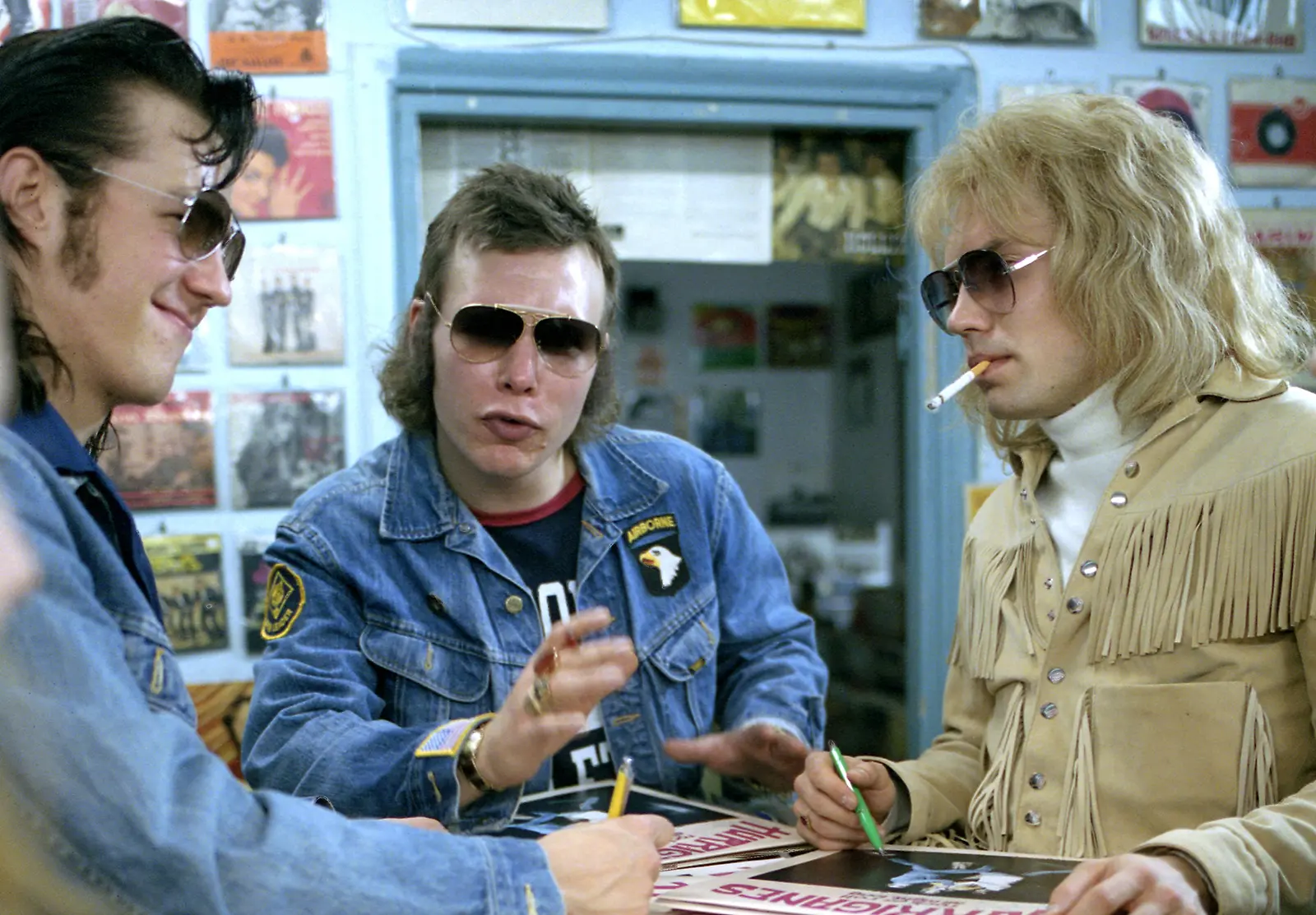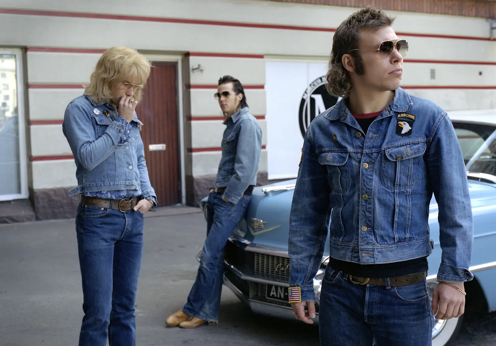 Albert Järvisen, Cissen ja Remun tyyli on elokuvassa loppuun asti harkittu. Farkut, farkkutakit, nahkarotsit, bootsit, aurinkolasit. Elokuva voittikin Paras puvustus Jussi-patsaan. Kuva: Sub