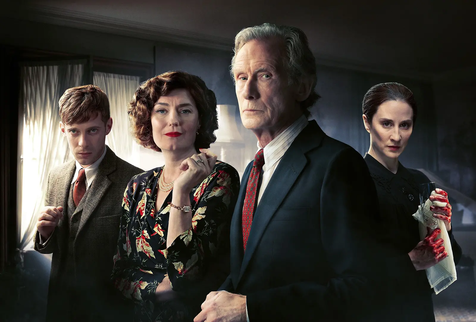 Luke Treadaway, Anna Chancellor, Bill Nighy ja Morven Christie ovat päärooleissa Agatha Christie tv-sarjassa. Kuva: James Fisher / Fifth Season / Yle