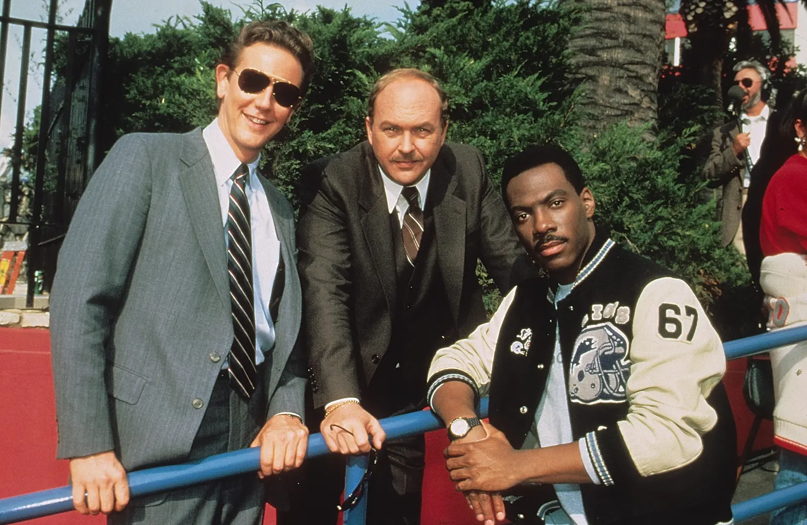 Axel Foley (Eddie Murphy) aisapareinaan “Billy” Rosewood (Judge Reinhold) ja John Taggart (John Aston). Kuva: AOP.