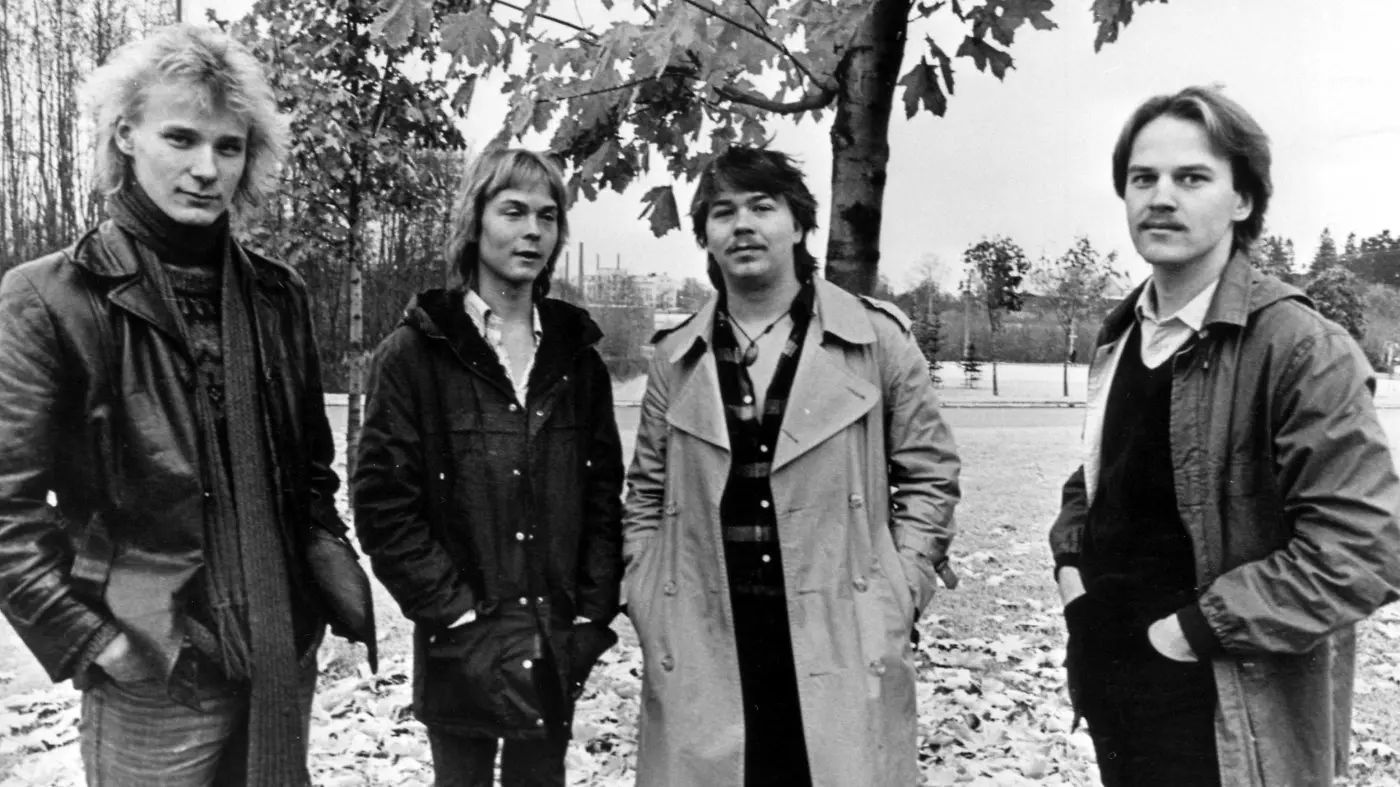 Hassisen Koneen alkuperäisjäsenet Ismo Alanko, veljekset Jussi ja Harri Kinnunen sekä Reijo Heiskanen. Kuva: Kari Hyttinen / Marianna Films Oy / Yle