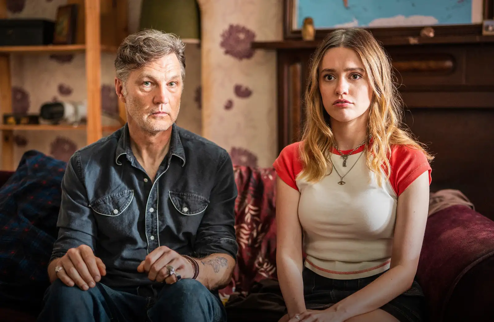 Malcolm-isä ja Gemma-tytär. David Morrissey näyttelee isää ja Aimee Lou Wood tytärtä. Kuva: Yle