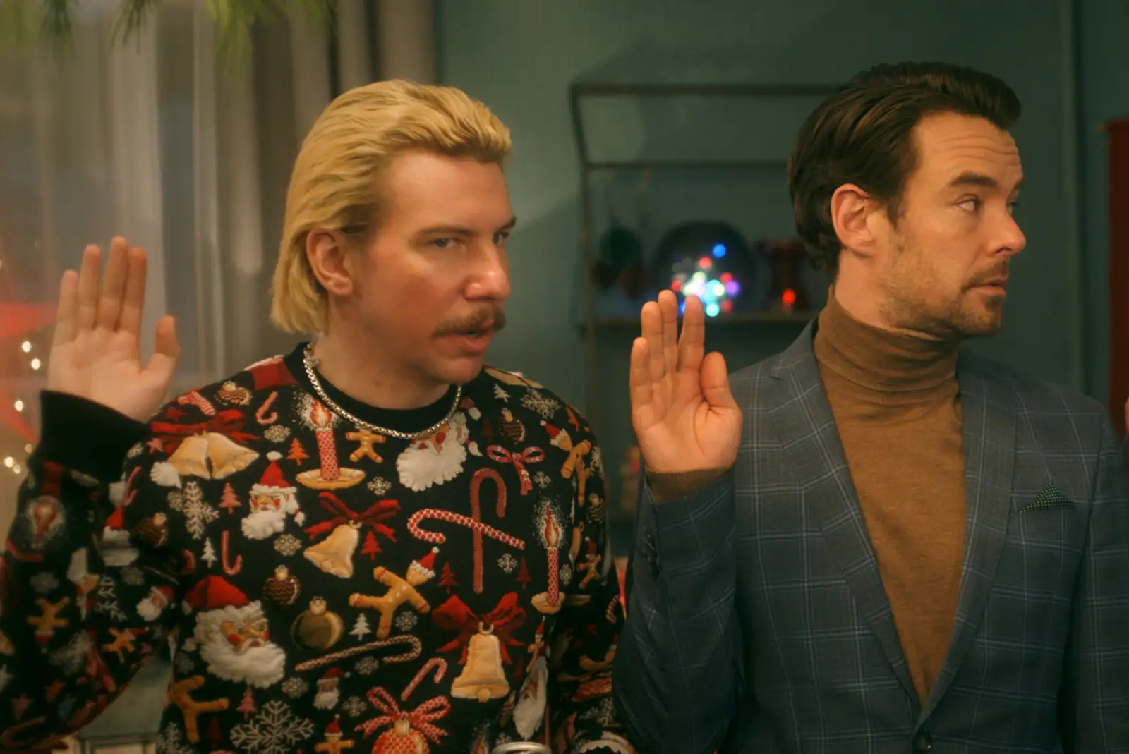 Jouluelokuvassa mukana myös veikeät veijarit eli näyttelijät Aku Hirviniemi ja Mikko Leppilampi. Kuva: MTV3