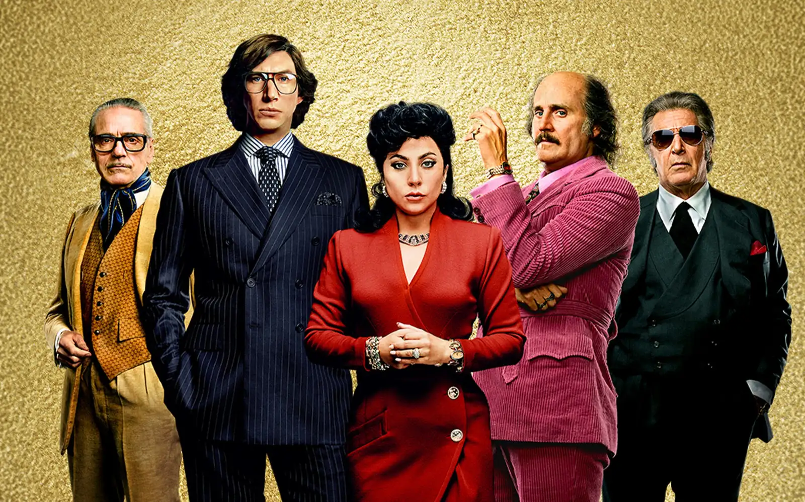 Jeremy Irons, Adam Driver, Lady Gaga, Jared Leto ja Al Pacino ovat Gucci-leffan päätähdet. MGM International Television Distribution Inc.