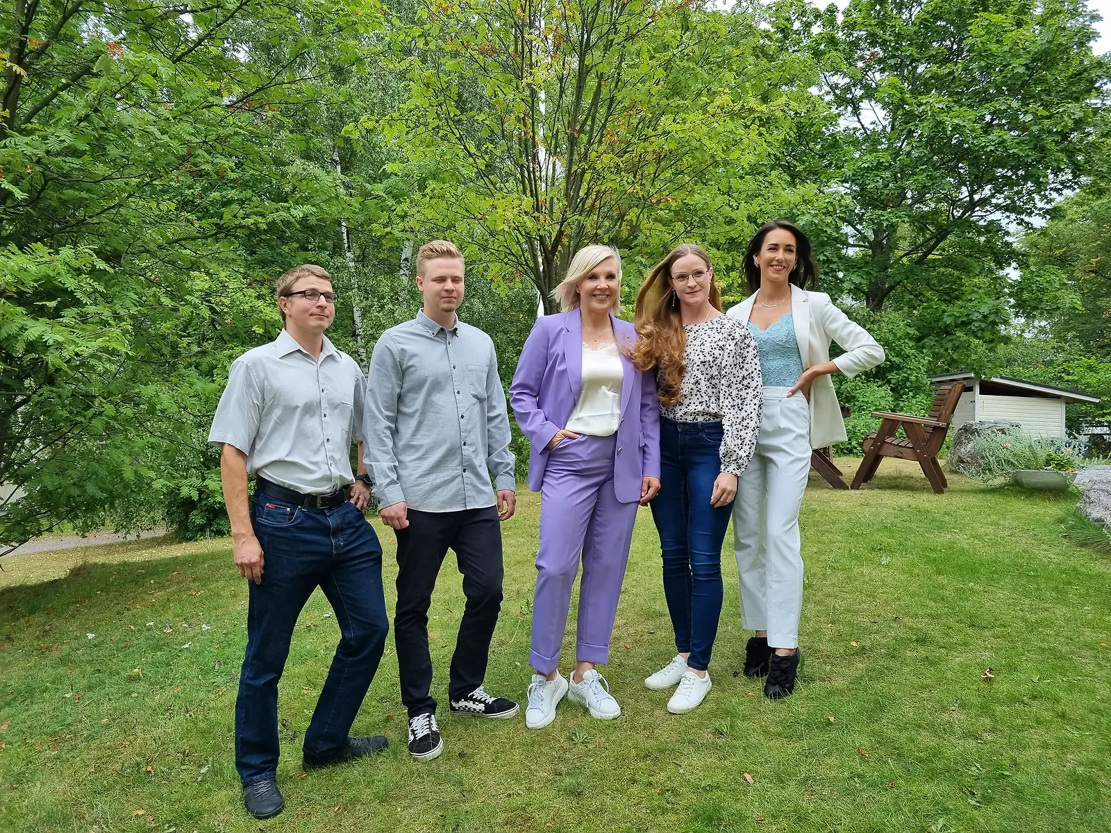 Syksyn 2022 maajussit, vasemmalta Arho, Joonas, Anna-Reetta ja Victoria, keskellä Vappu Pimiä. Kuva: K. Kurki