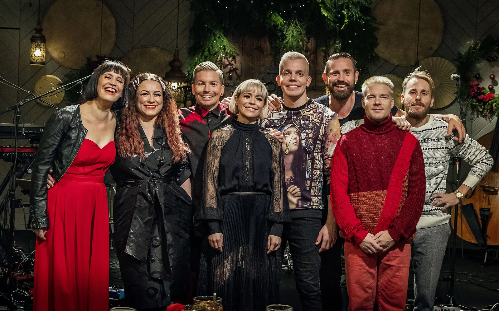 Vain elämää artistit ja Jare yhteiskuvassa. Kuva: Nelonen