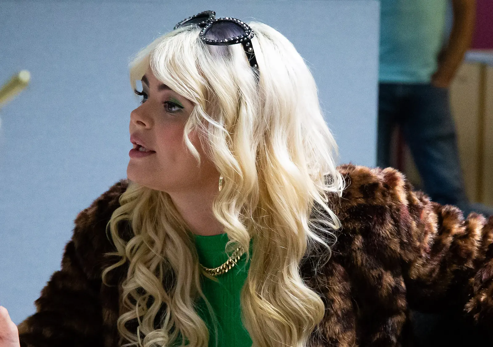 Erika Vikmanin roolihahmo on räväkkä blondi Koskinen tv-sarjassa. Kuva: Eveliina Laitanen/Nelonen