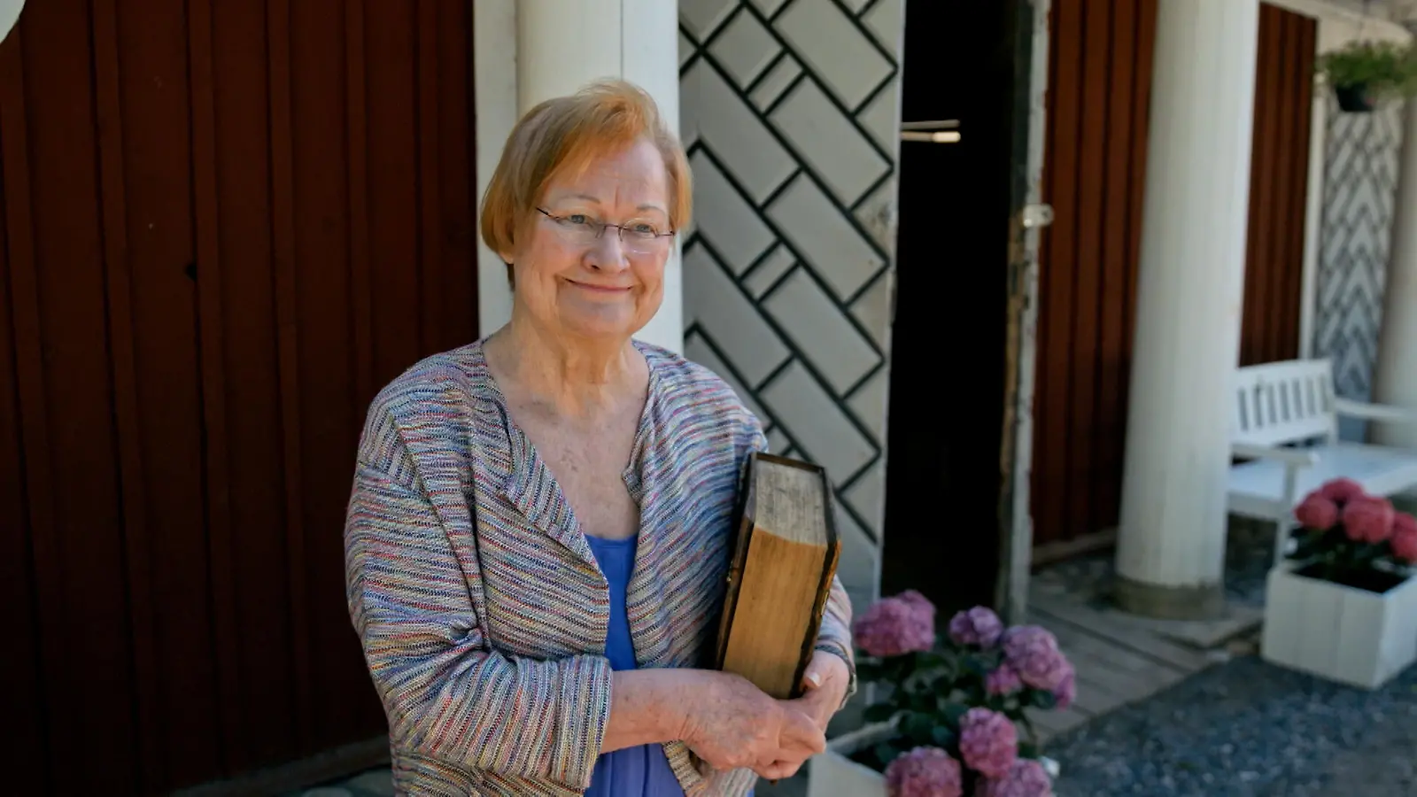 Tarja Halonen tuo restauroitavaksi perheraamatun. Kuva: MTV3